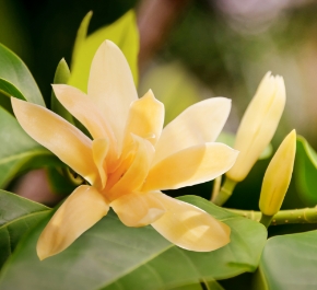 金香木と純白の花々のみずみずしい輝きが澄みわたる