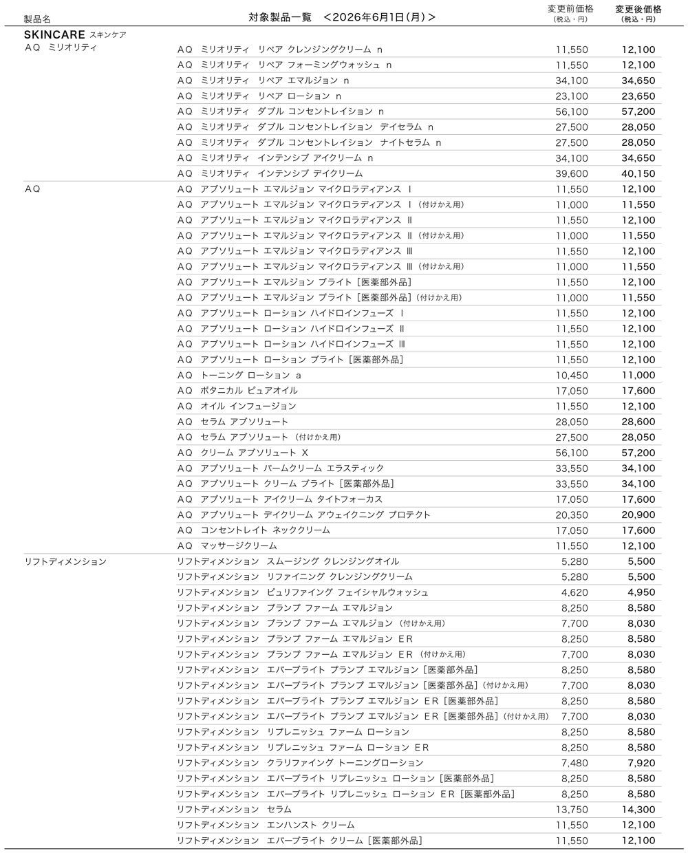 ※ リポソーム アドバンスト リペアセラム 30mLにつきましては、価格変更はございません。
