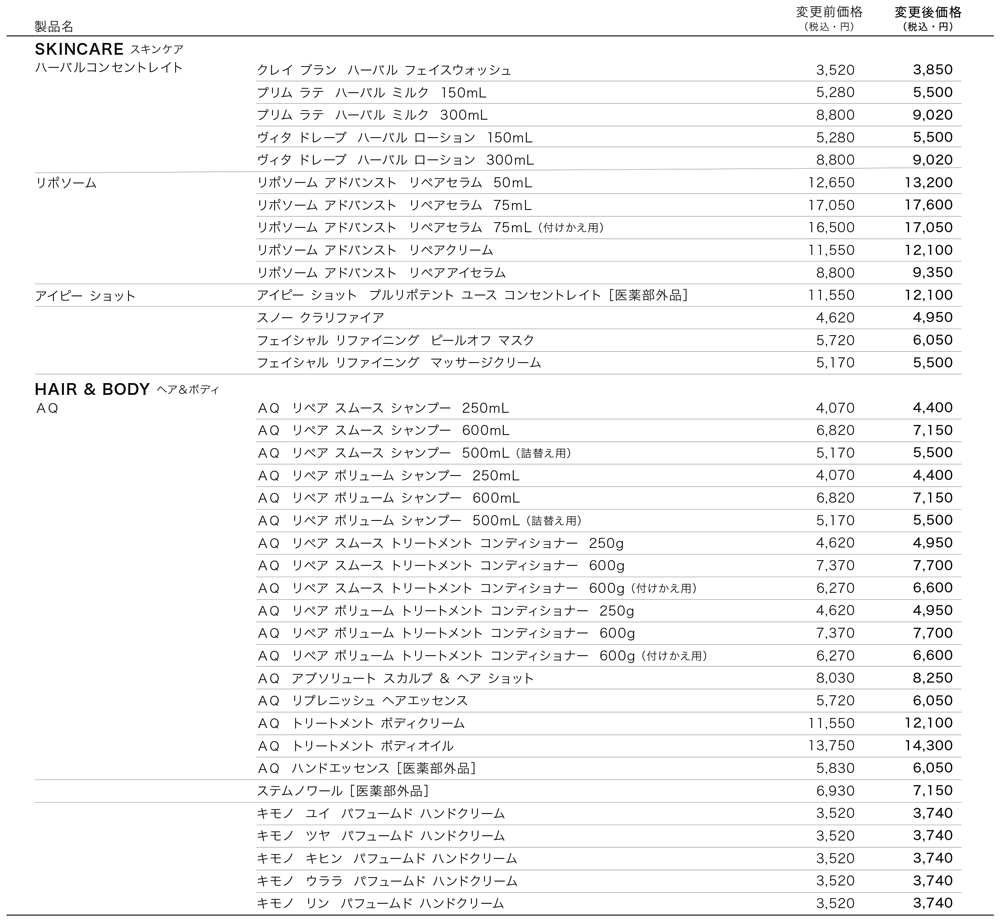 日頃よりコスメデコルテをご愛顧いただき、誠にありがとうございます。この度、コスメデコルテでは原料費の高騰などを受け