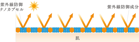 塗布膜の隙間を埋めるUV防御成分を含んだナノカプセルをW配合。