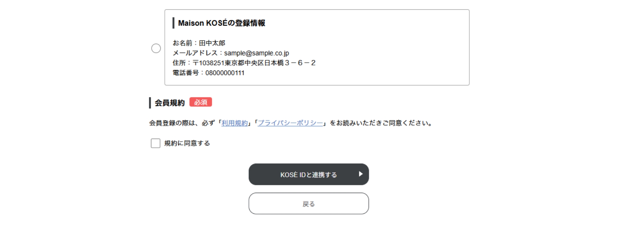 ご登録情報の「KOSÉ ID」への連携手続きを