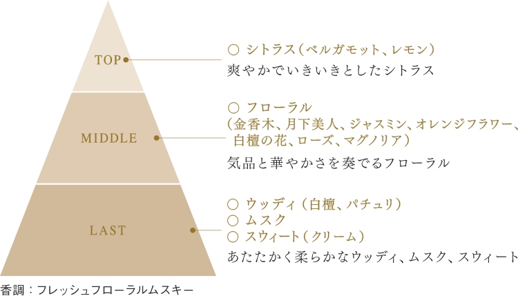 みずみずしいグリーンフローラルウッディの香りへと仕上げました。