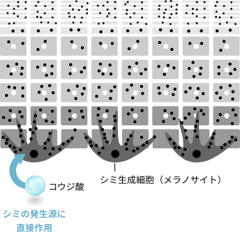 アフターケアにも - コウジ酸はシミを根源※から防ぐ効果を研究されている、