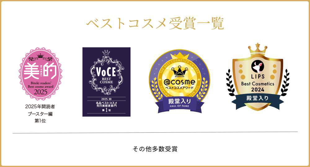※1 雑誌・WEB等のメディアにおけるリポソームシリーズの累計受賞総数(2025年6月末時点)